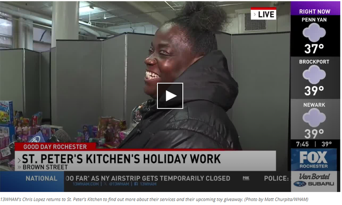 13 WHAM’s Chris Lopez on Good Morning Rochester spent the morning broadcasting live, sharing our Holiday Toy Store and early food prep for our Christmas Eve special dinner with the community plus interviews with clients and area providers.